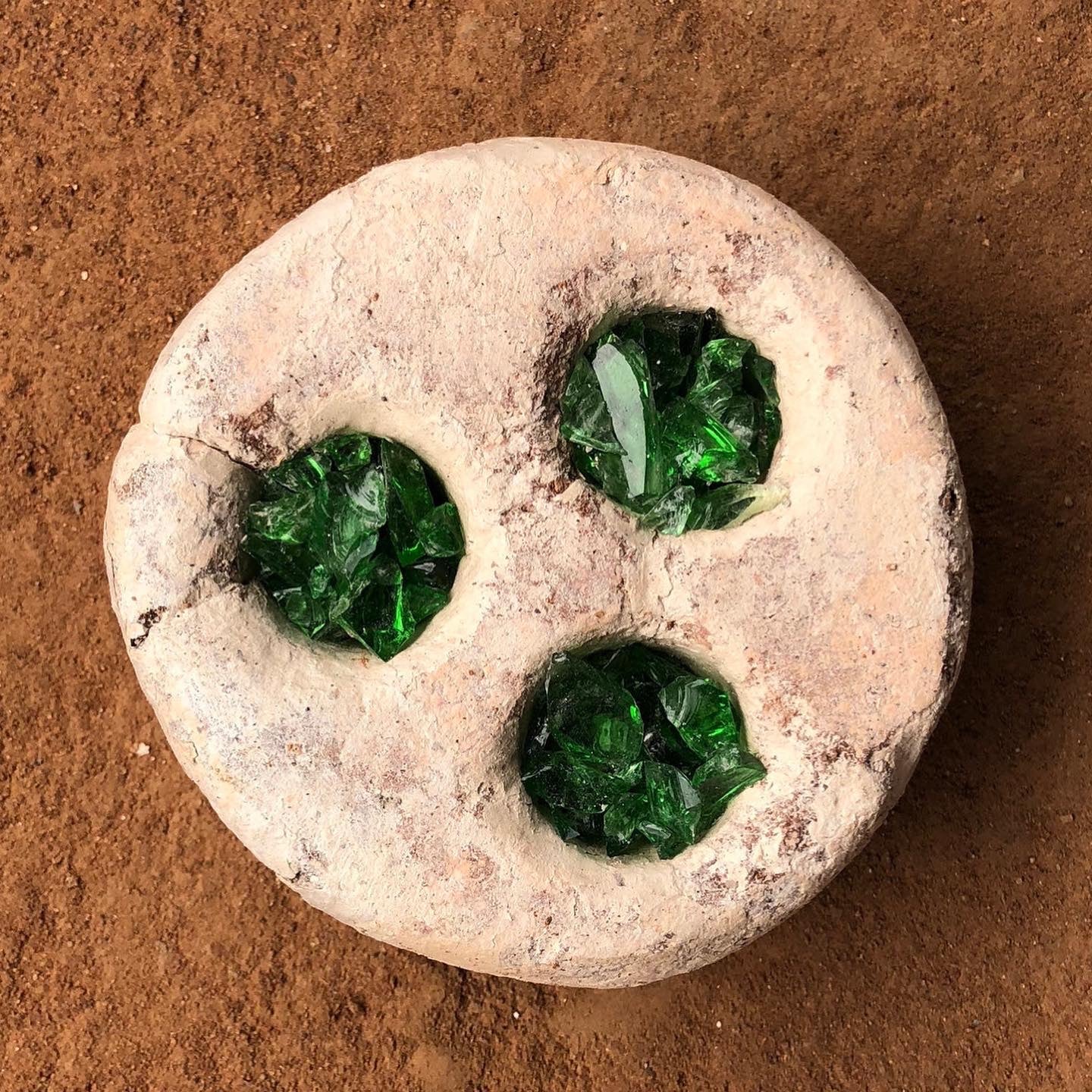 The old & broken glass is then crushed into a rough powder and poured into clay molds in different sizes.