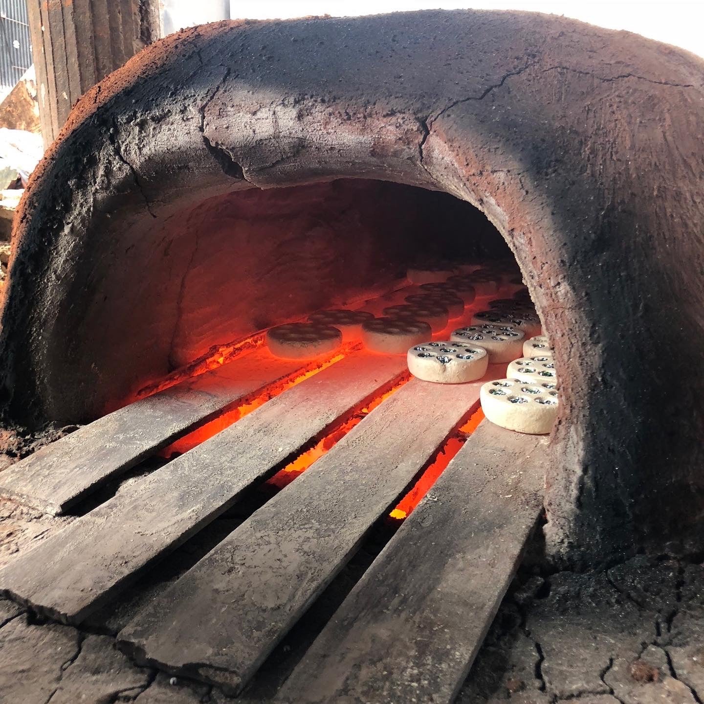 The clay molds are then baked in an oven where the glass powder particles melt together forming the new bead.